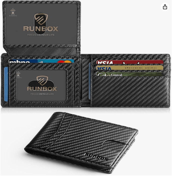 A stylish leather wallet makes a practical and appreciated gift. This slim bifold includes RFID protection, multiple card slots, dual ID windows, and a durable design perfect for everyday carry.